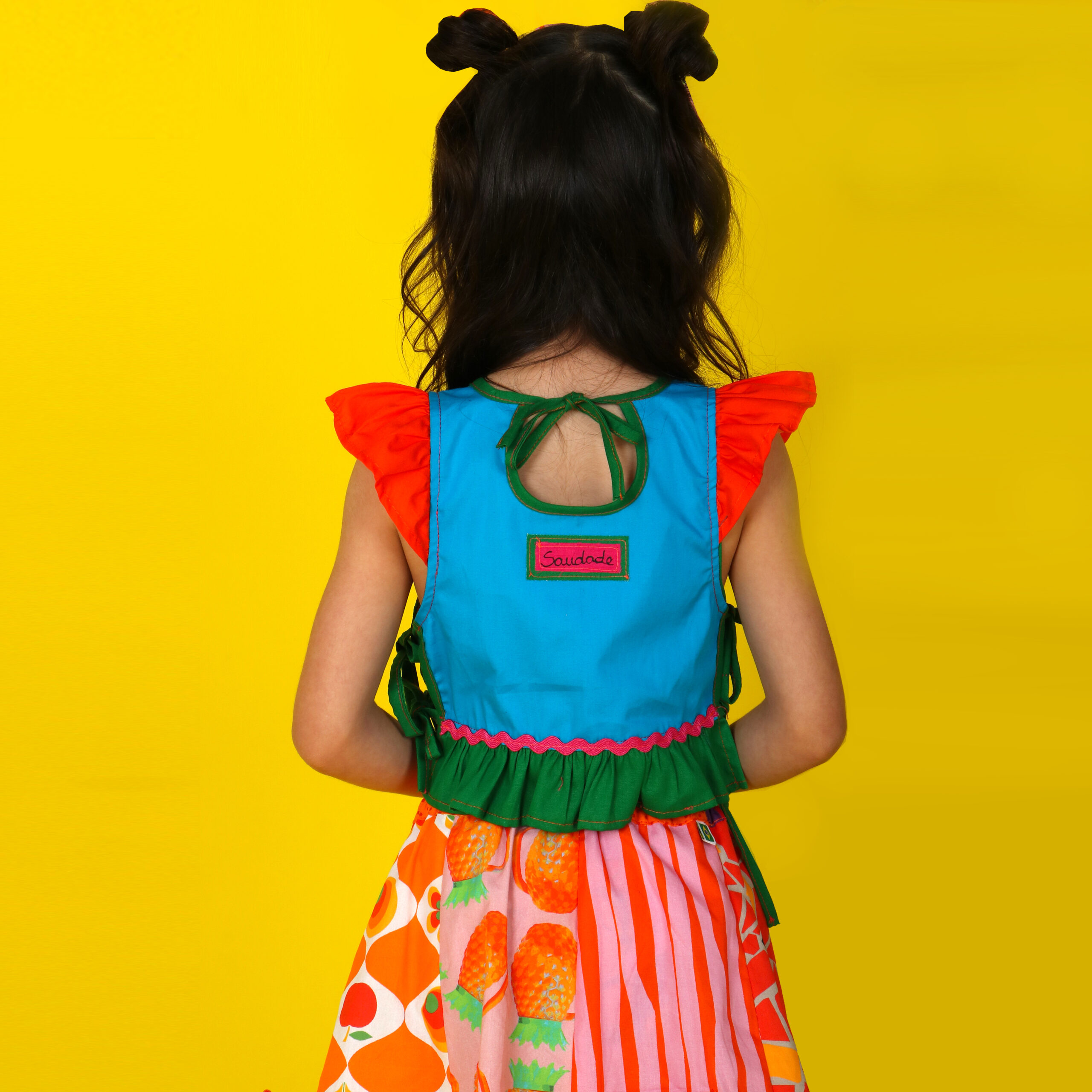A localização de elementos da estampa na blusa pode variar de acordo com o corte do tecido.