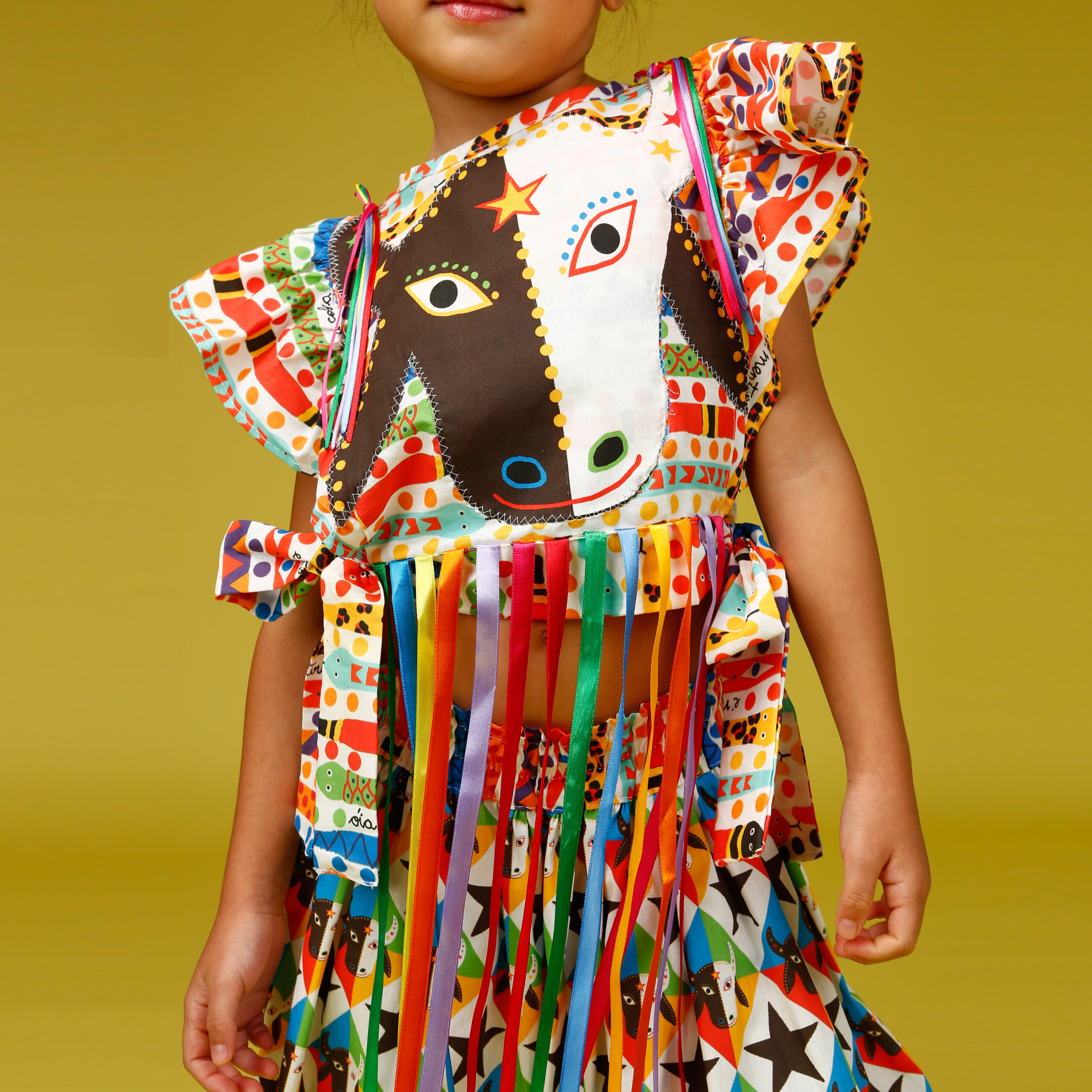 A localização de elementos da estampa na blusa pode variar de acordo com o corte do tecido.