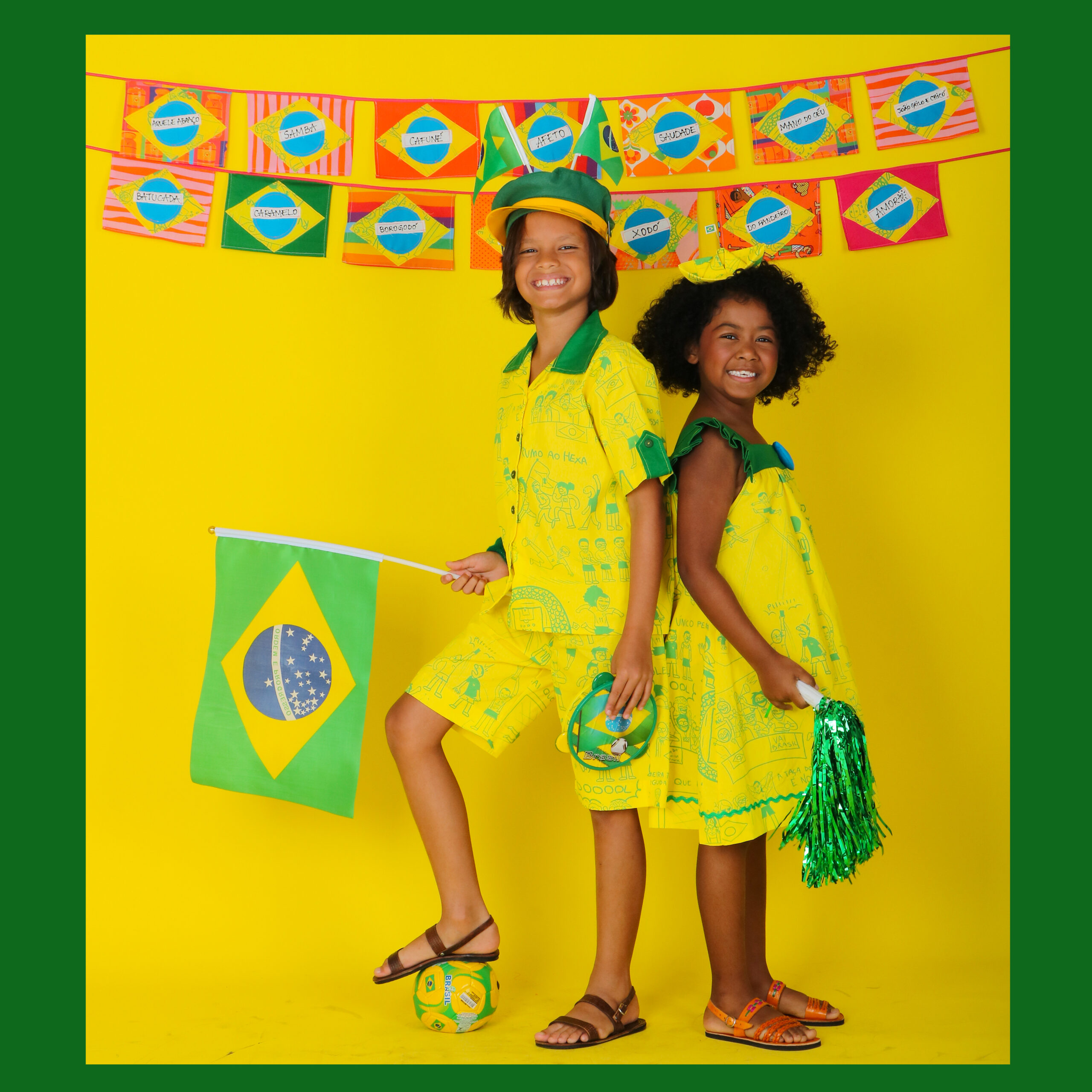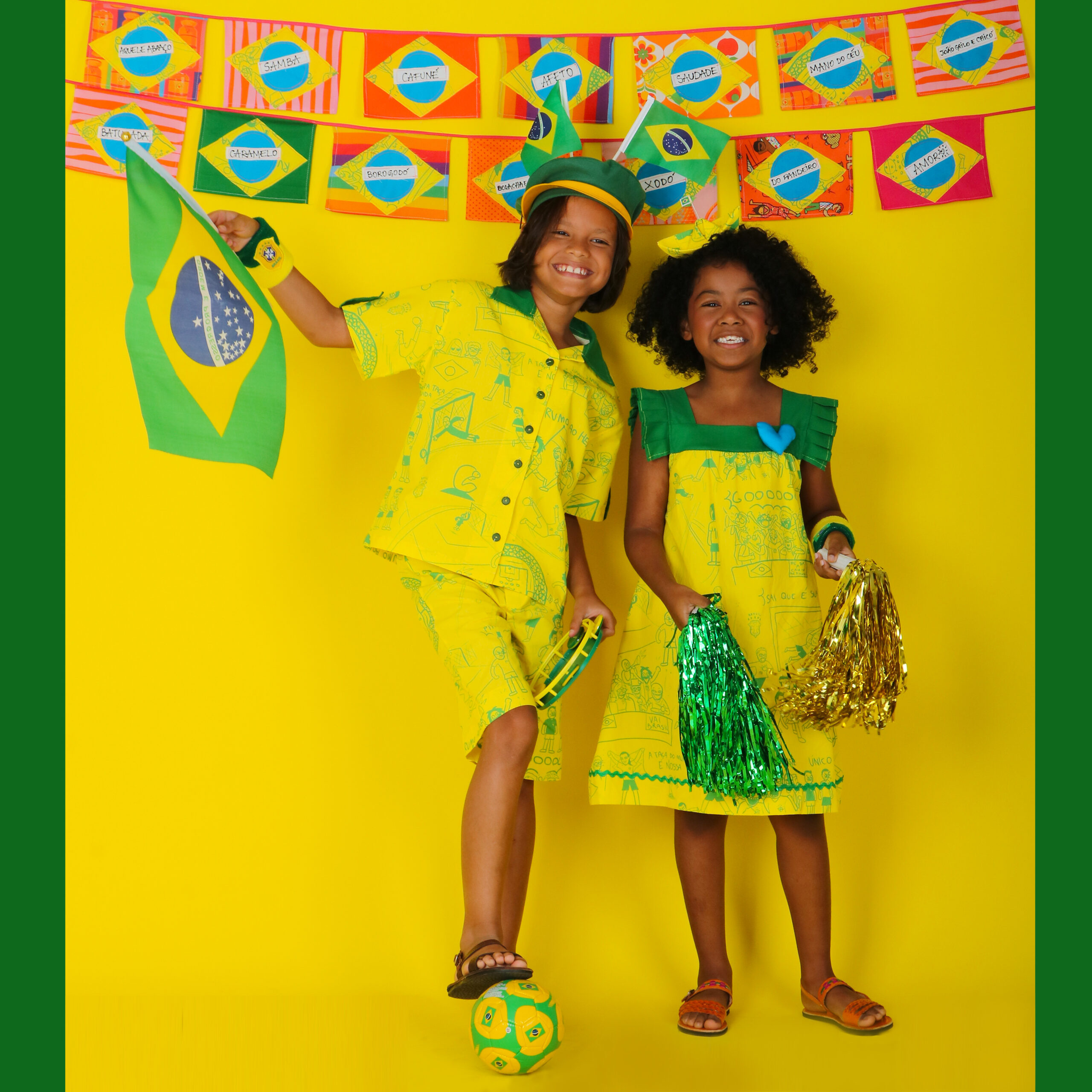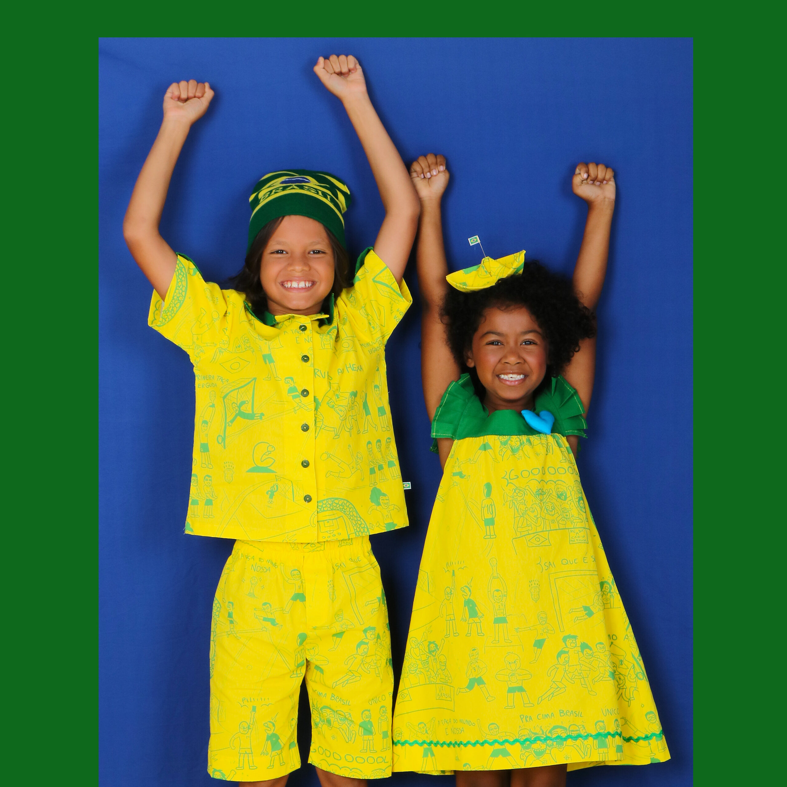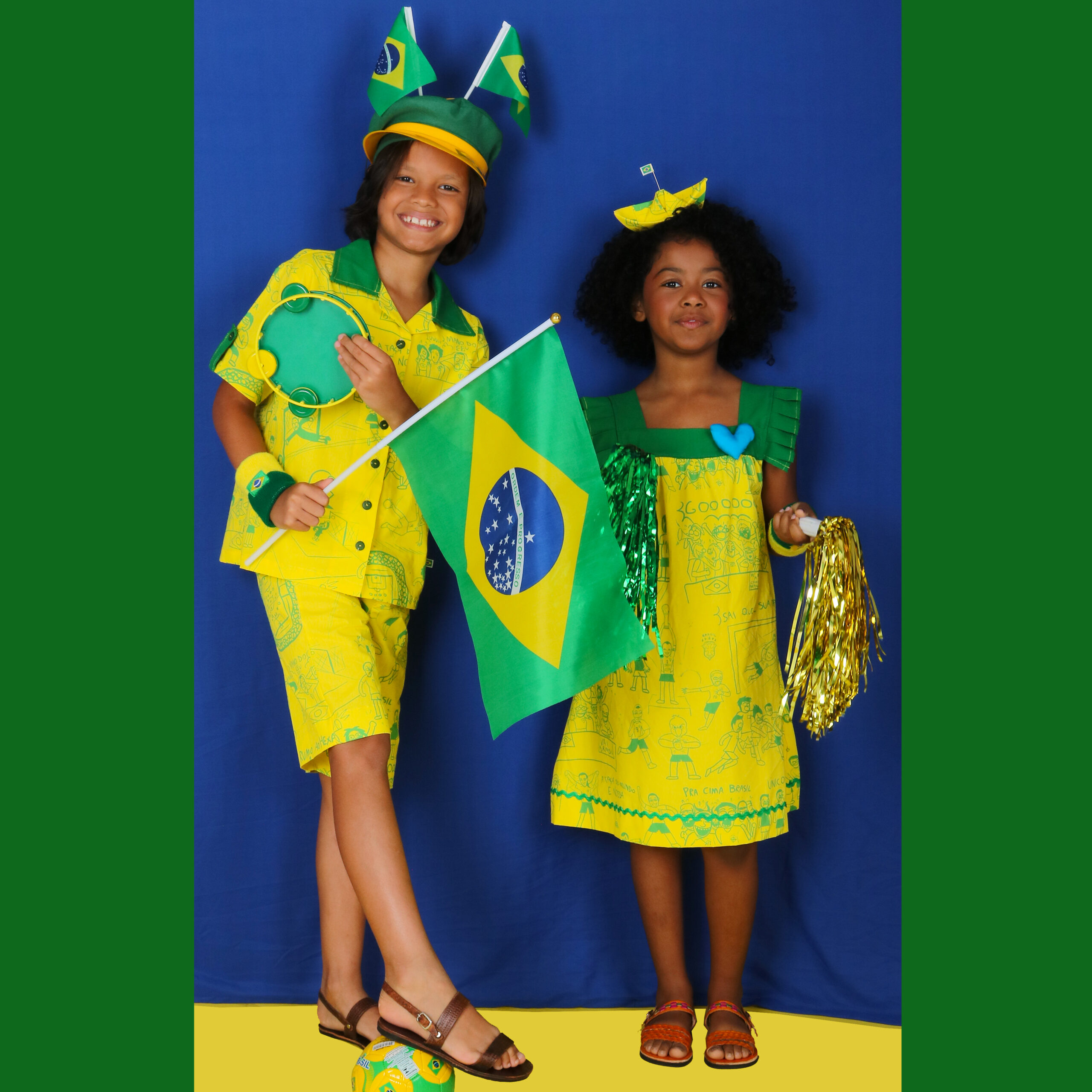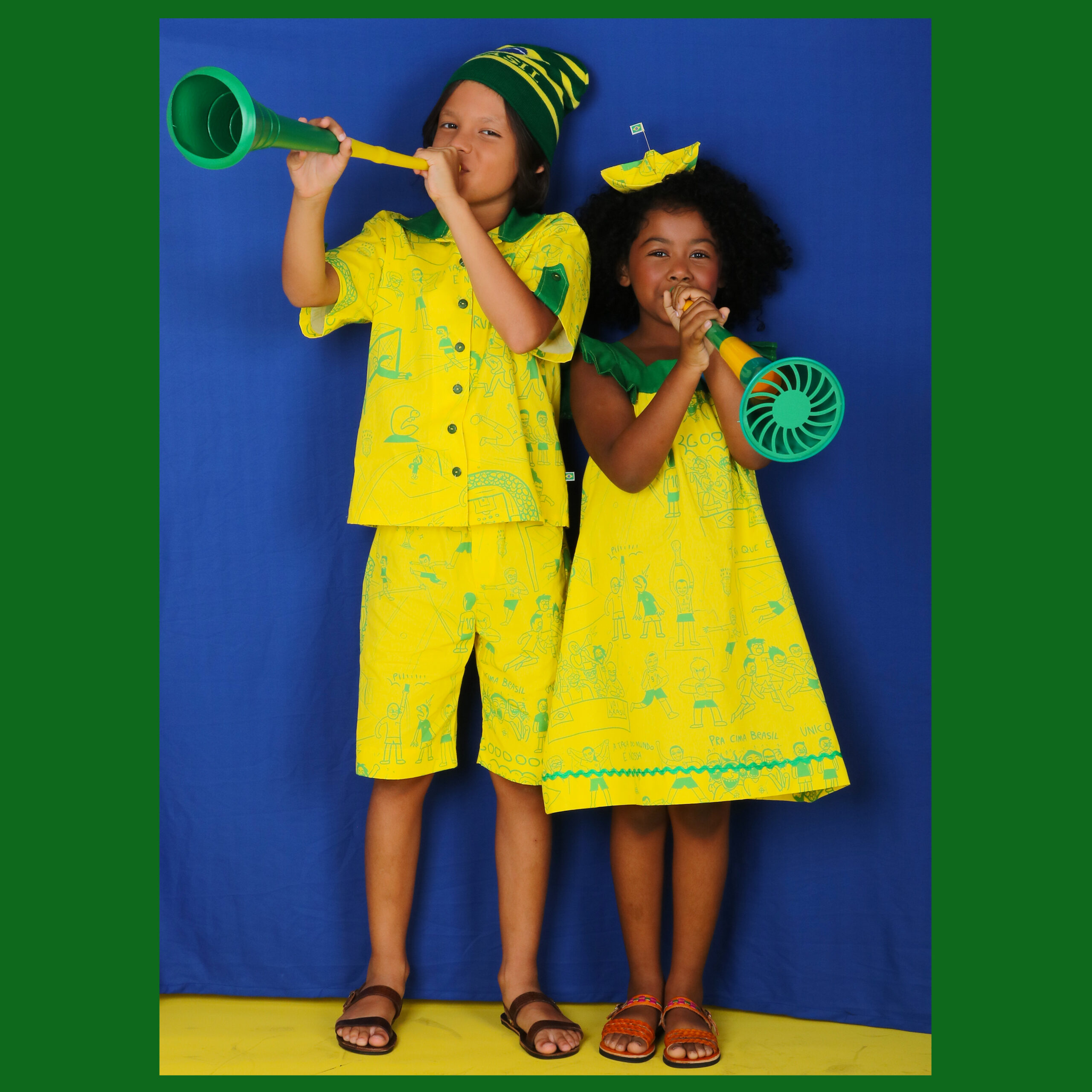 A localização de elementos da estampa no vestido pode variar de acordo com o corte do tecido.